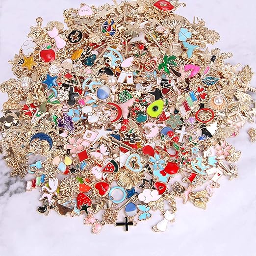 350 Charms for Jewelry Making, Assorted Gold Plated Enamel Pendants, decorative accessories for DIY Necklaces Bracelets Earrings Jewelry Making Key Chains and Crafts