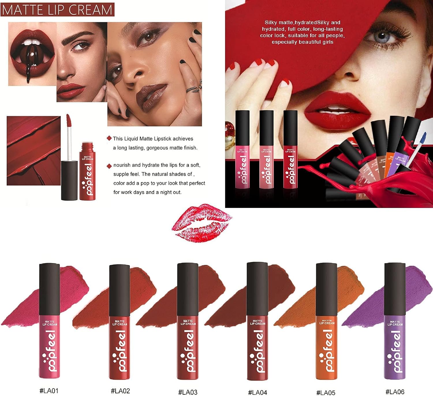 Glossy colors and high quality ingredients together to care skin.